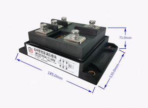應(yīng)客戶要求,我公司開發(fā)了專門針對該行業(yè)的集成一體化中壓整流模塊(以下簡稱模塊)。該模塊以優(yōu)質(zhì)的晶閘管高壓芯片作為主電路的主要器件,用陶瓷覆銅板(DBC)為焊接基板,以純銅板作為導(dǎo)熱基板,與觸發(fā)系統(tǒng)一起封裝于一個(gè)封閉的塑料殼體中,完美解決了傳統(tǒng)設(shè)備存在的弊端。目前,模塊已經(jīng)開始大量應(yīng)用于中壓調(diào)壓和煤礦電磁鐵勵(lì)磁控制(安裝于防爆柜中)等場合。